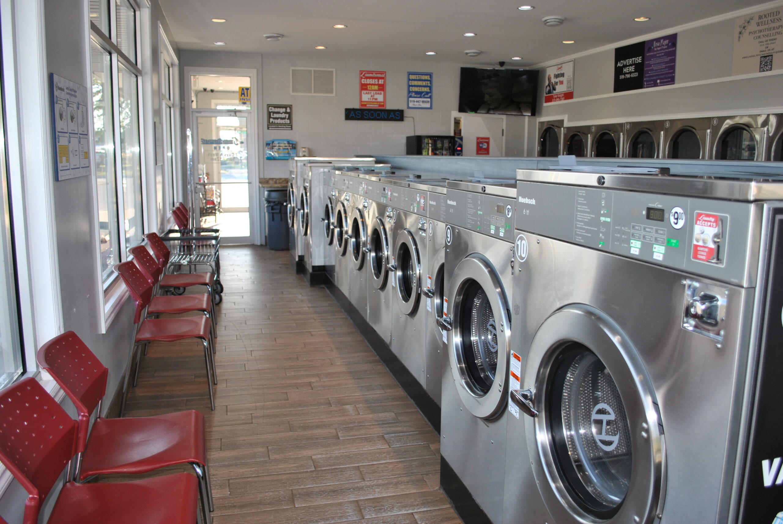 Our laundromat features a bright, air-conditioned environment with high-efficiency machines and well-maintained spaces for a comfortable wash experience.